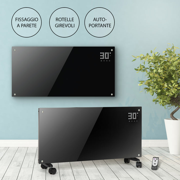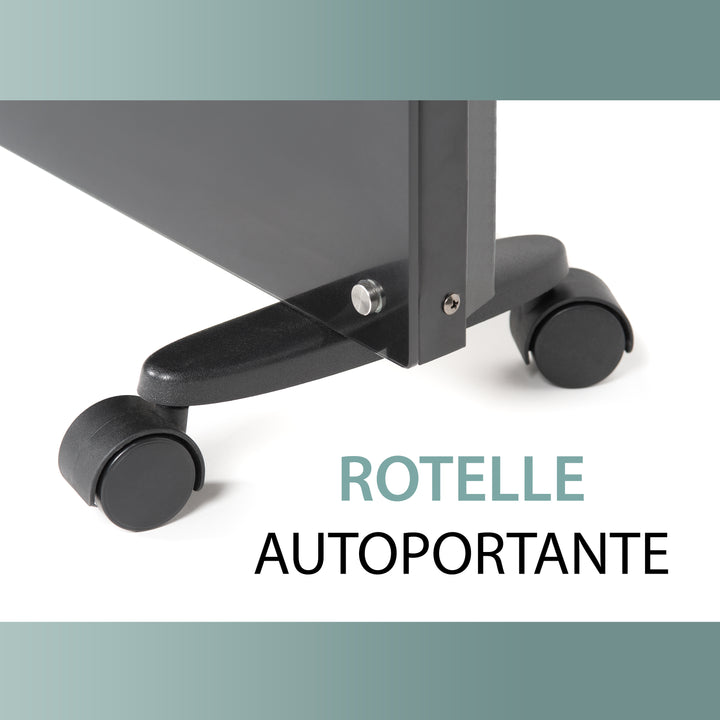 VERSATILE (RUOTE + MONTAGGIO A PARETE): il pannello riscaldante di TRINITI può essere montato a muro, oppure, essere utilizzato a TERRA ed essere facilmente spostato in ogni stanza grazie alle eleganti ruote antigraffio fornite in dotazione. Dimensioni del prodotto: 83,5 x 40 x 9 cm. Peso Netto: 9 kg. Alimentazione: 220-240V 50/60H. Contenuto della confezione: 1 x pannello riscaldatore, 1 x telecomando, 2 x ruote d'appoggio, 1 x materiale di montaggio, manuale d'uso.