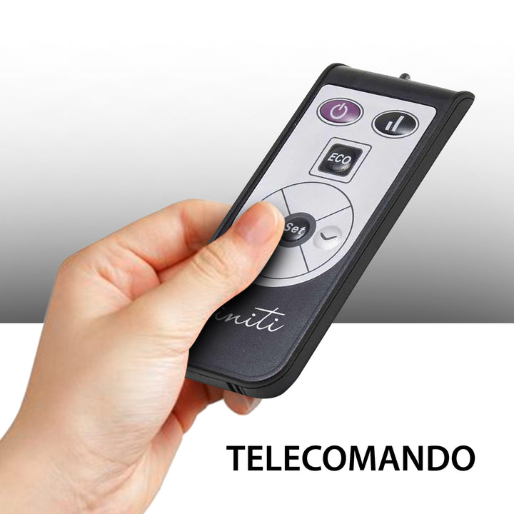 TELECOMANDO e DISPLAY: grazie al telecomando fornito in dotazione, è possibile regolare le impostazioni comodamente senza avvicinarsi al prodotto. Inoltre, il display a LED (con tasti touch a ‘sfioramento’) e TIMER incorporato, offre una chiara lettura del funzionamento del prodotto.