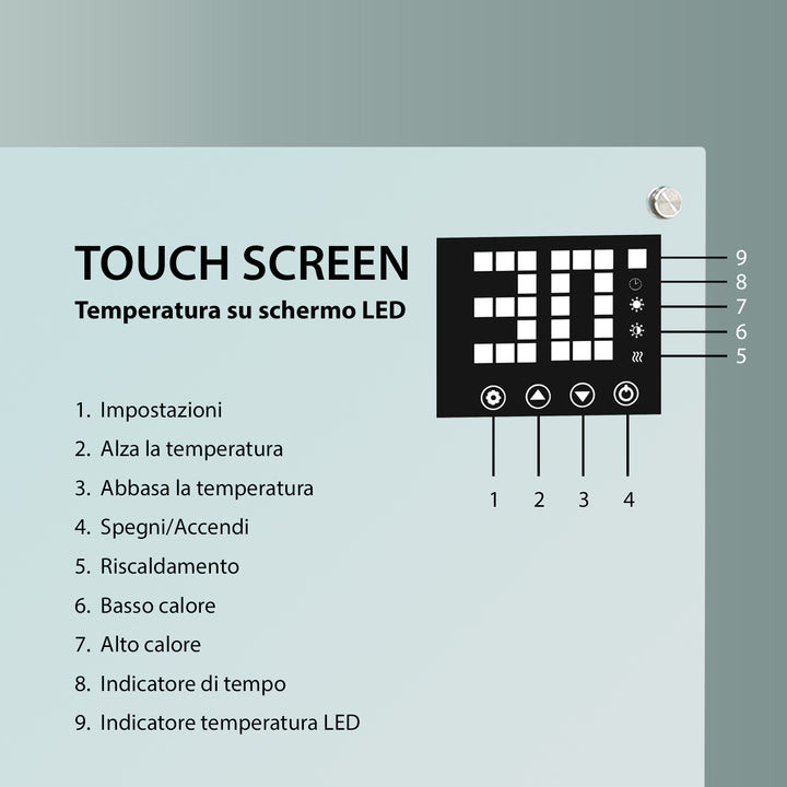 • CALORE CONFORTEVOLE: il pannello riscaldante di TRINITI assicura un aumento della temperatura e una distribuzione uniforme del calore nelle stanze SENZA MOVIMENTO D’ARIA, creando un ambiente caloroso, accogliente e piacevole. L’elegante e resistente VETRO TEMPERATO ed il design moderno, permettendo di utilizzare questo prodotto in qualsiasi abitazione.