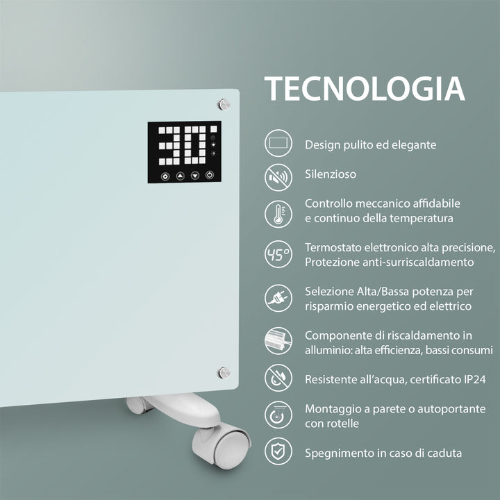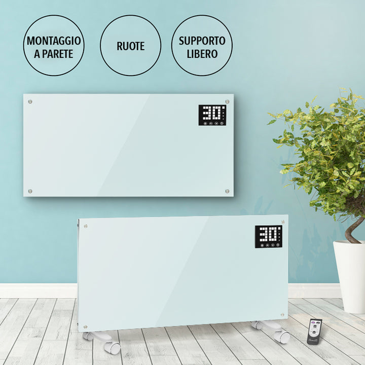 Termoconvettore elettrico con doppio sistema di montaggio (con ruote o a parete)